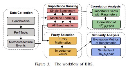 - 이용 가능한 모든 지표의 중요성을 정량화한 후 특성화를 위한 중요한 마이크로 아키텍처 지표를 식별하기 위해 퍼지 집합 이론을 사용한다. 이 새로운 워크로드 특성화 접근방식이 BBS이다.