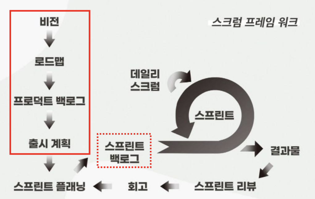 - 프로덕트 백로그 : 무엇을 개발할지 더 쪼개서 정의를 해준다.