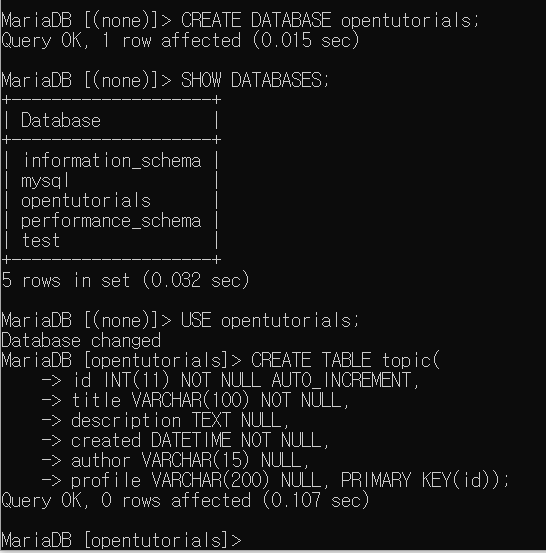 MySQL 데이터베이스 생성> CREATE DATABASE 만들고자하는 데이터베이스 이름;