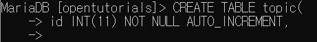 TEXT NULL : 문자는 null이 될 수 있으니까 (값이 없는 것도 허용한다.) (TEXT 가 VARCHAR보다 더 많은 글자를 담을 수 있다.)