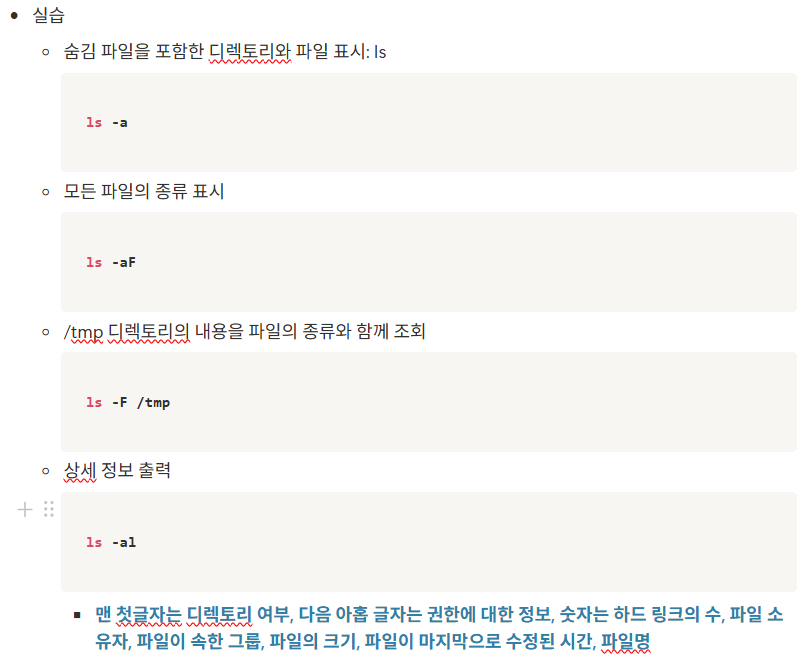 - a: 숨김 파일을 포함해 모든 파일의 목록을 출력