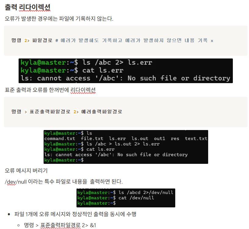 - 파일이 없으면 만들어주고 있으면 기존 내용이 명령의 수행 결과로 대체된다.