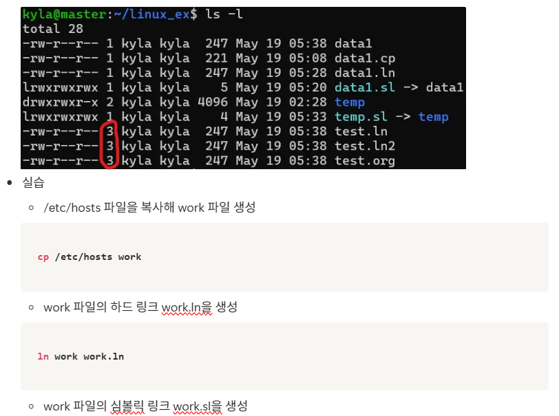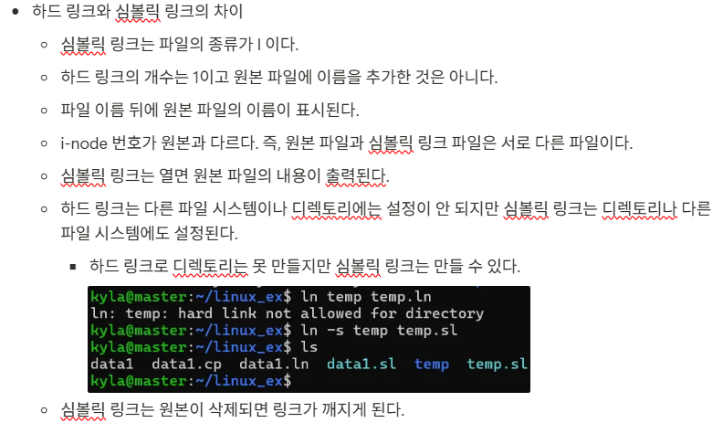 - 하드 링크: 기존 파일에 새로운 파일이름을 추가로 생성