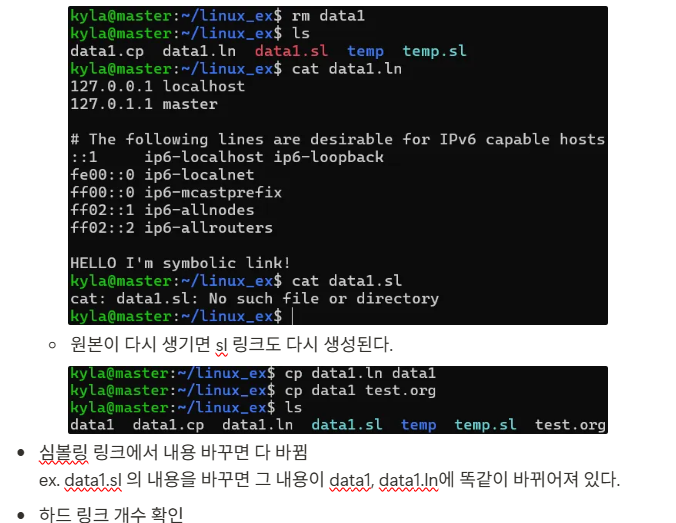 - ex. data1 파일에 대한 data1.ln 이라는 하드 링크 생성