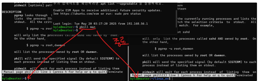 - k: 프로세스를 종료하는데 종료할 PID를 묻는 대화 상자를 출력