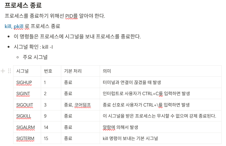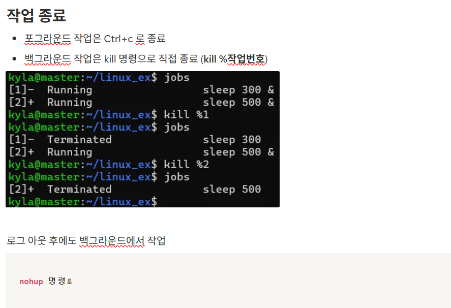 - ex. sleep 100 : 100초 동안 대기해야 한다. (→ ctrl + c로 멈춤)