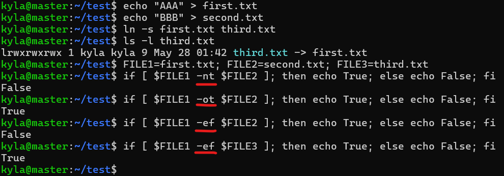 - -ot: 변수 유형이 파일이면서 변수1이 변수2보다 이전 파일이면 참