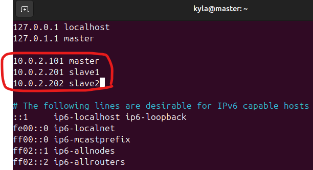 slave1, slave2 에는 각각 127.0.1.1도 slave1, slave2로 바꿔주기