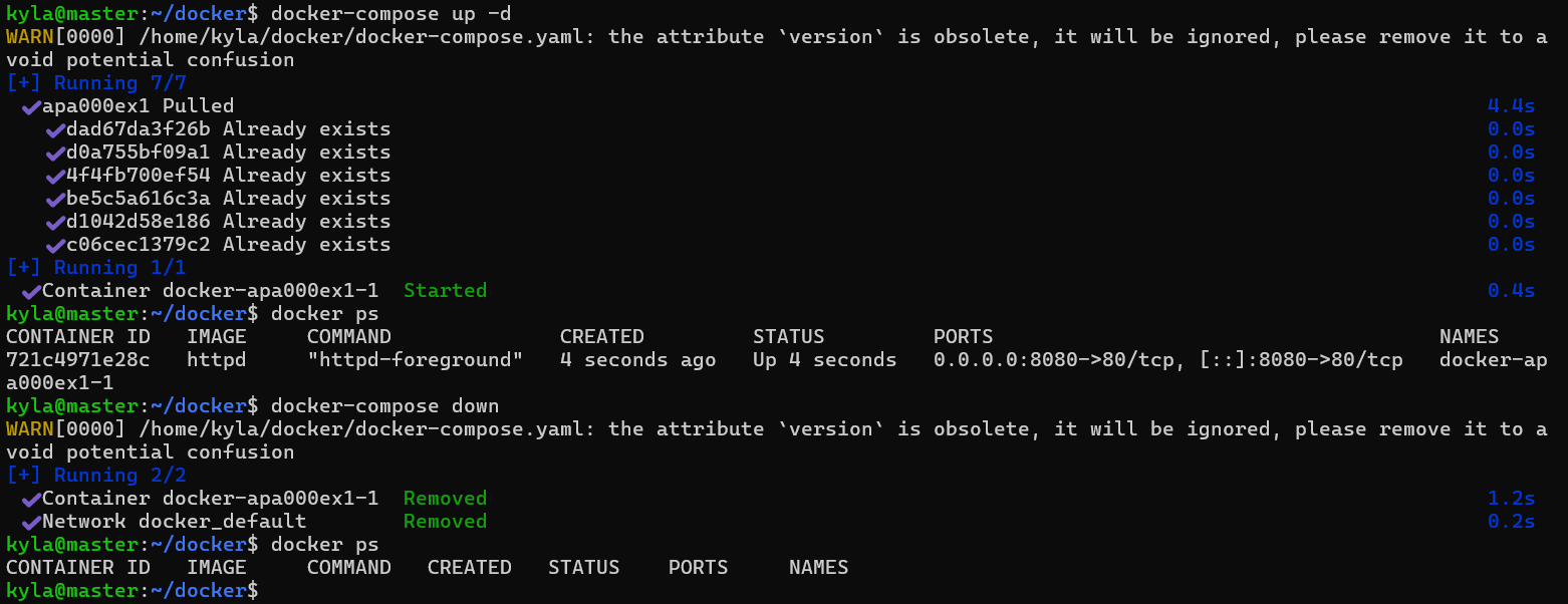 docker run --name apa000ex1 -d -p 8080:80 httpd- vi docker-compose.yml