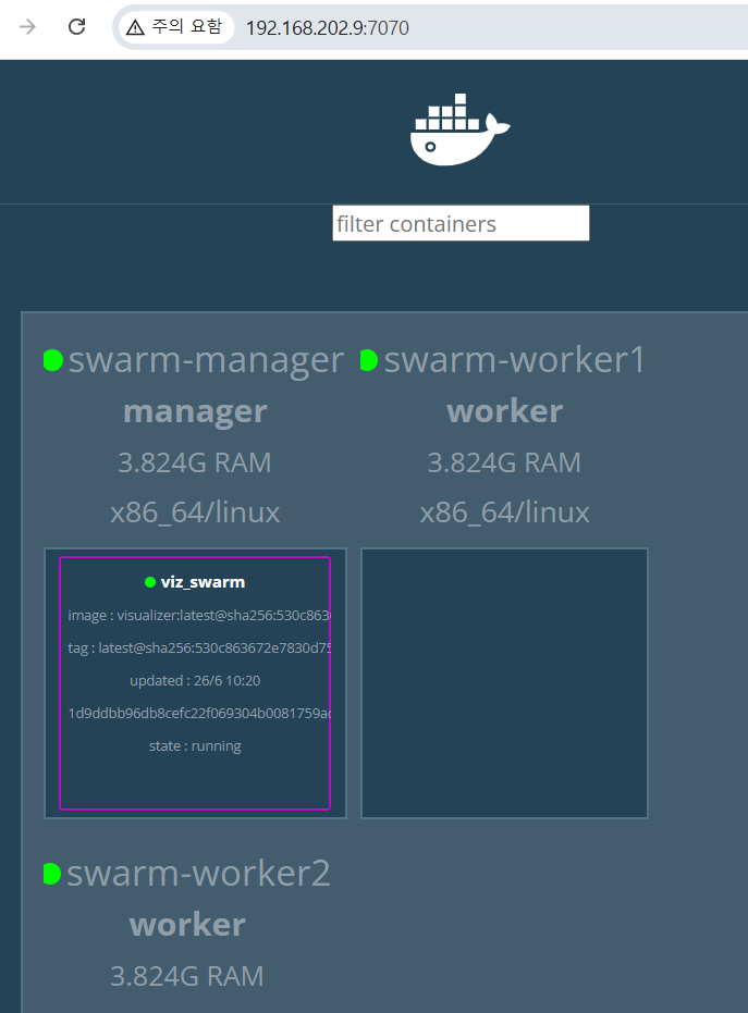 → docker service 명령으로 서비스를 생성할 때 여러 개의 컨테이너를 생성하면 컨테이너가 배치된 모든 노드의 포트가 동시에 개방이 된다.