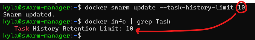 docker swarm update --task-history-limit 개수