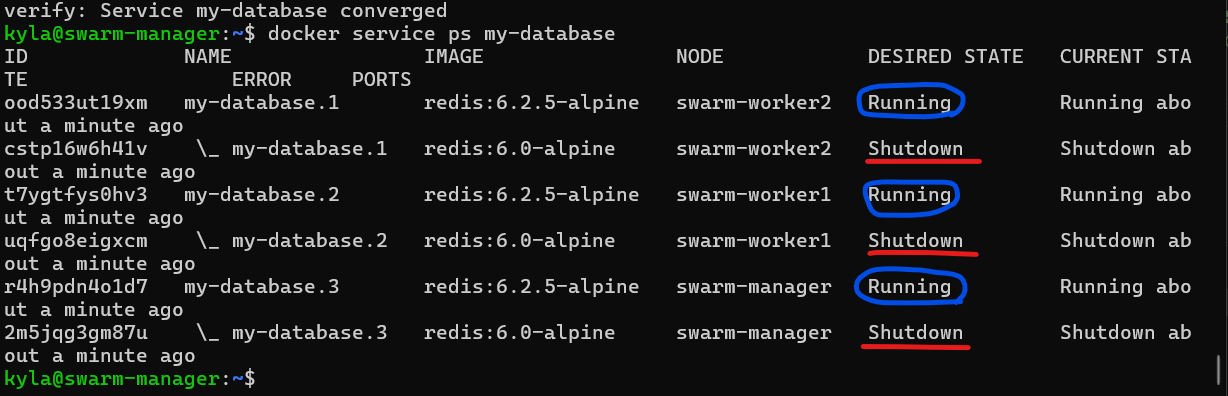 docker service update --image redis:6.2.5-alpine my-database2