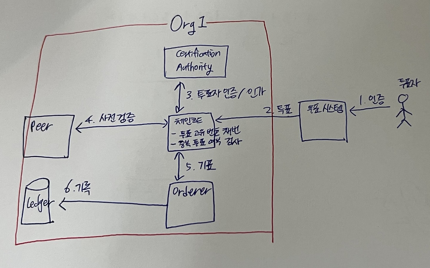 - 하이퍼레저 패브릭의 인증 절차와 별도로 투표 시스템 앞단에서 별도로 인증을 구축할 필요가 있다.