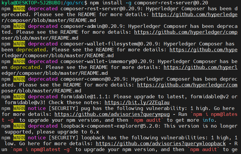 그러면 위의 사진처럼 Installing Hyperledger Composer prereqs for Ubuntu bionic 이라는 문구가 나오면 쫘르르륵 설치가 된다.